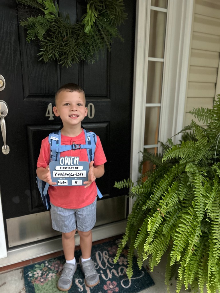Today our oldest officially started kindergarten. Mom and I walked him into class—no big deal, just casually holding onto his tiny hand until the classroom door became a portal to Growing‑Up Land.